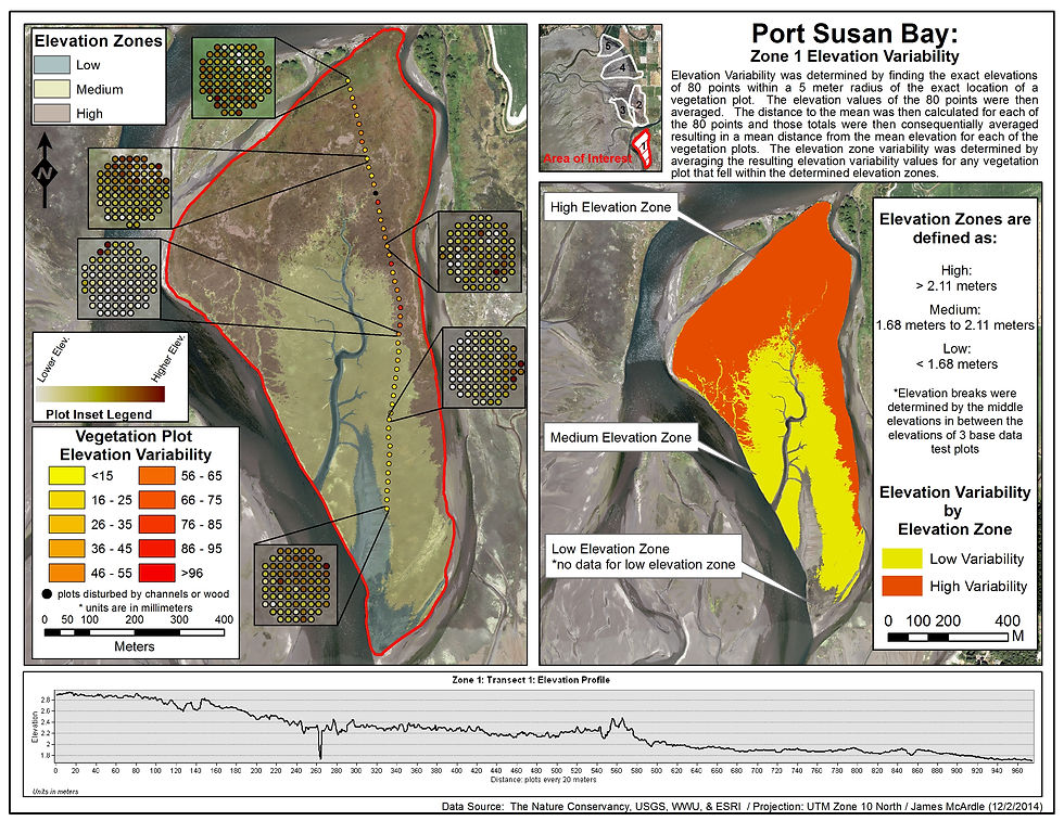 These sets of maps details the elevation variability of the Port Susan Bay Estuary and each of the 5 study zones within the Estuary.